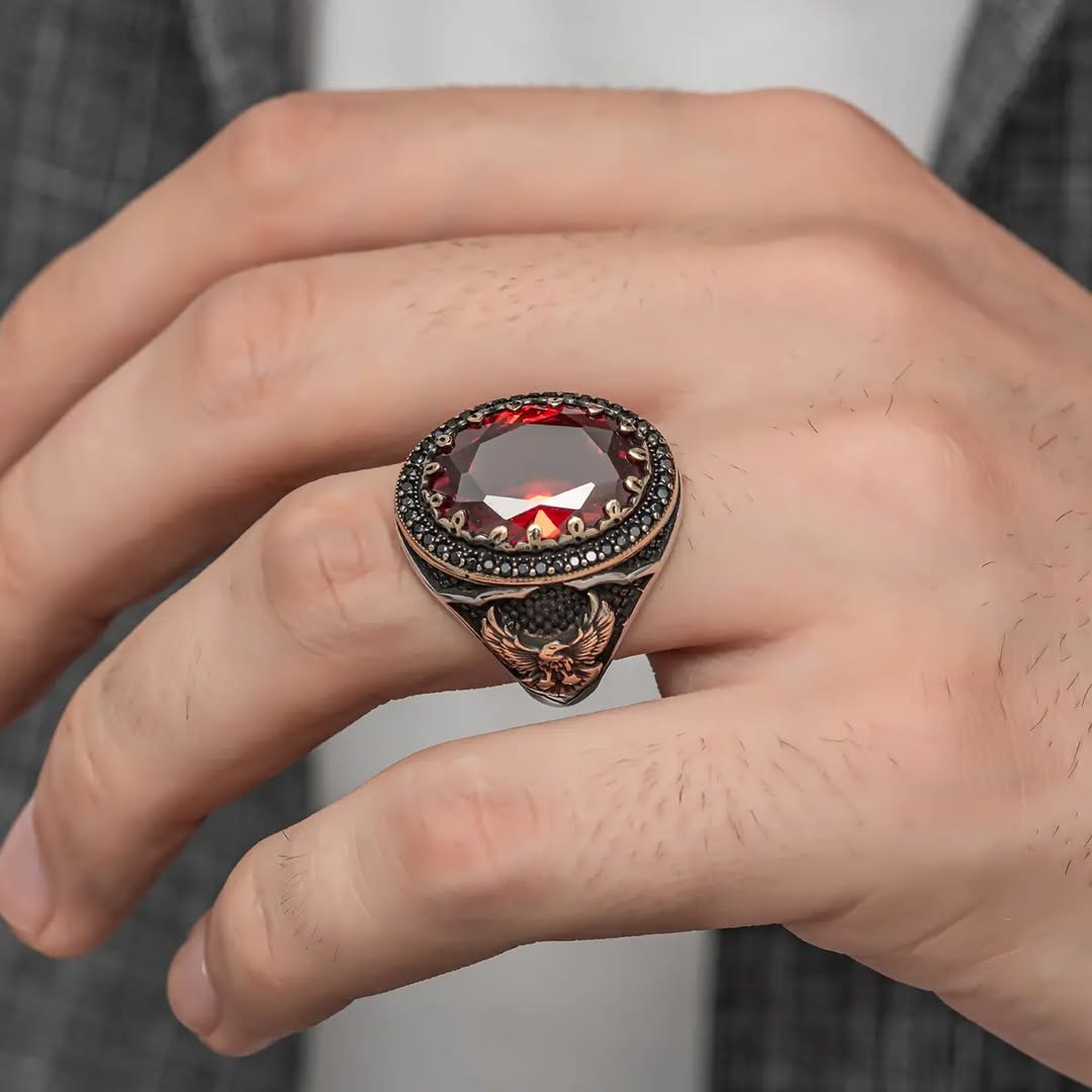 انگشتر نقره ترک وارداتی نگین یاقوت سرخ سنتتیک کد TU0079